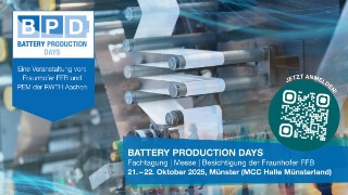 The Fraunhofer Research Institution for Battery Cell Production FFB and the Chair of Production Engineering of E-Mobility Components (PEM) at RWTH Aachen University invite you to the first “Battery Production Days” (BPD) in Münster on October 21 and 22. The conference and trade fair, which is expected to attract around 250 participants, will alternate between Münster and Aachen in the future.